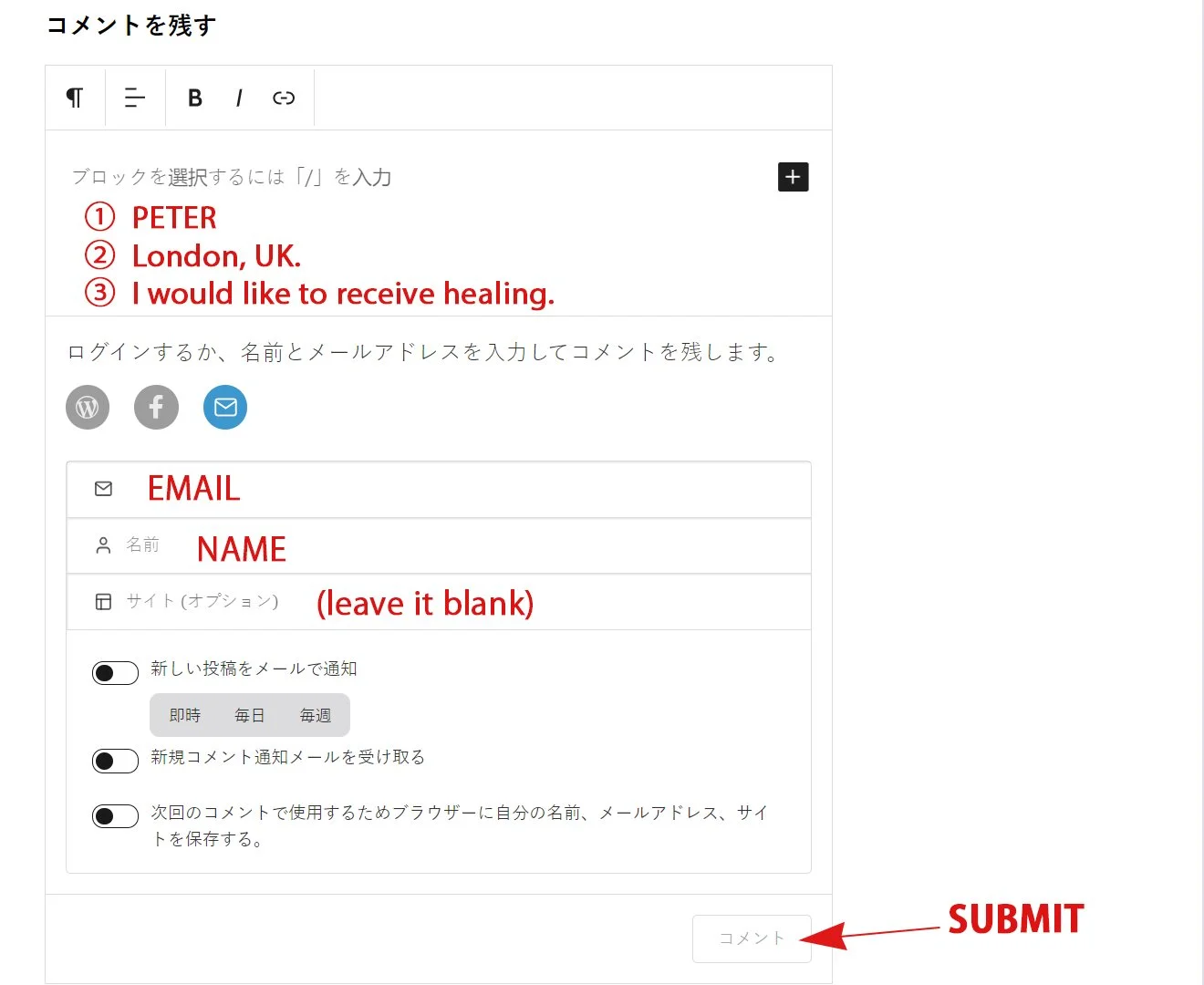 Applications will only be accepted in the COMMENT SECTION OF THE JAPANESE VERSION OF THIS WEBSITE.